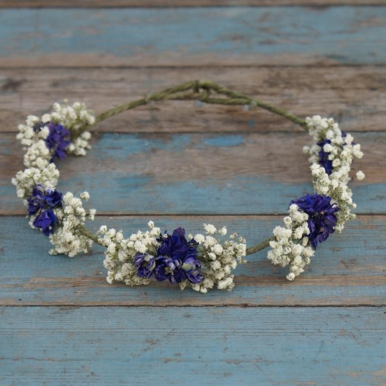 The ingredients for our Boho Midnight Hair Circlets are simply Baby's Breath and Larkspur.