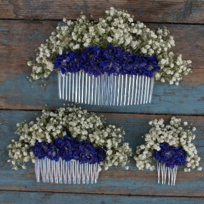 The ingredients for our Boho Midnight Haircombs are simply... Baby's Breath and Larkspur.