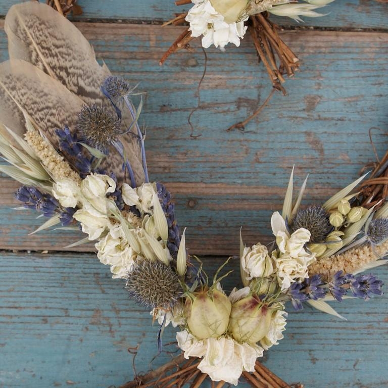 Our rustic, dried flower vine hearts are a very versatile choice for decorating your wedding venue or home.