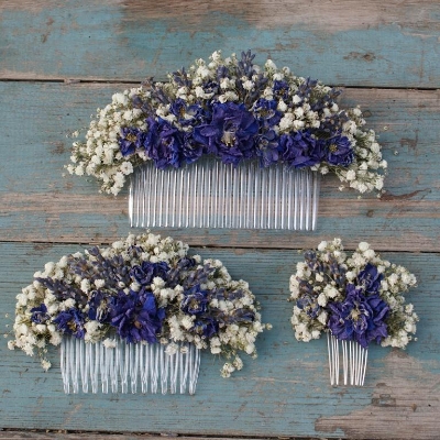 Our handmade dried flower hair combs are a great alternative for creating a wild, bohemian look to your wedding.