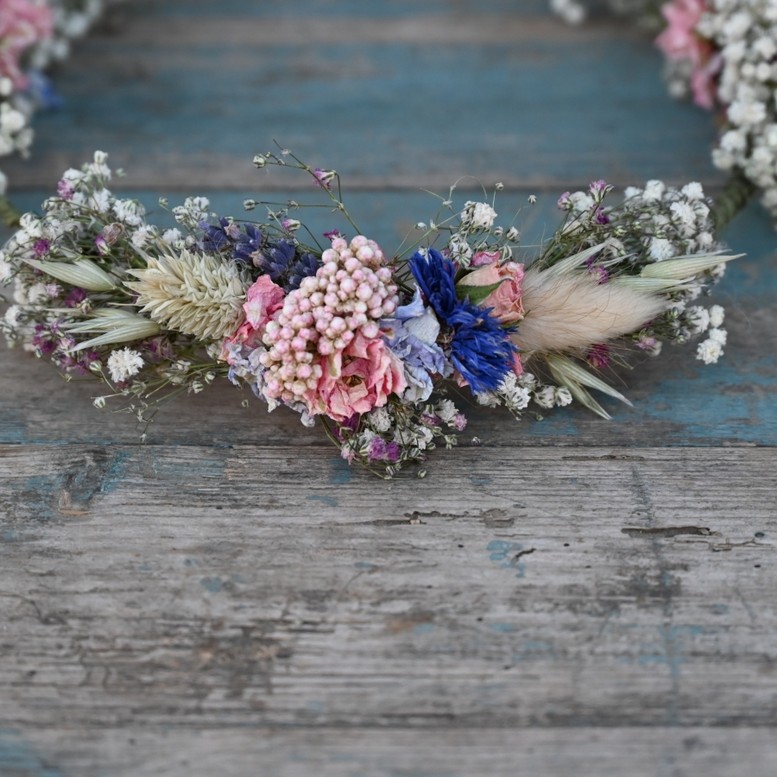 Our handmade dried flower hair crowns are a great alternative for creating a wild, bohemian look to your wedding.