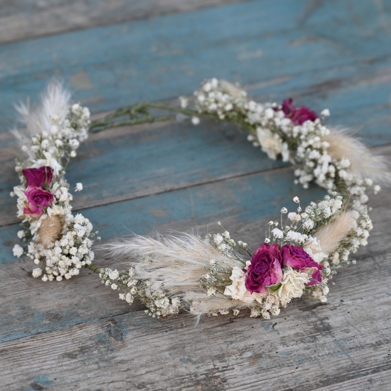 Our handmade dried flower hair crowns are a great alternative for creating a wild, bohemian look to your wedding.