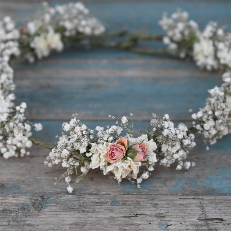 Our handmade dried flower hair crowns are a great alternative for creating a wild, bohemian look to your wedding.