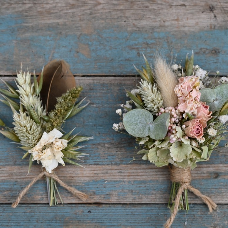 Our DAINTY handmade, rustic dried flower buttonholes are a great alternative for creating a wild, bohemian look to your wedding.