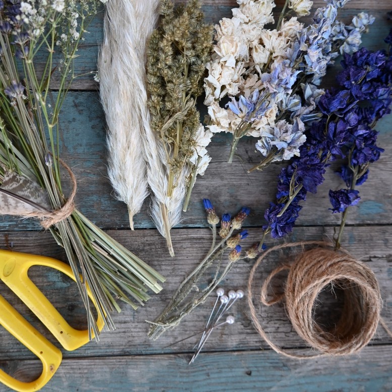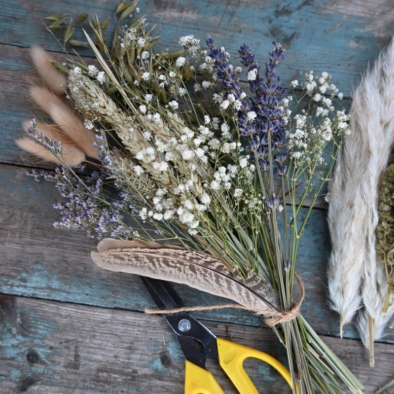 Assorted dried flowers, shorter stem length and flower heads ( excludes Cornflowers )