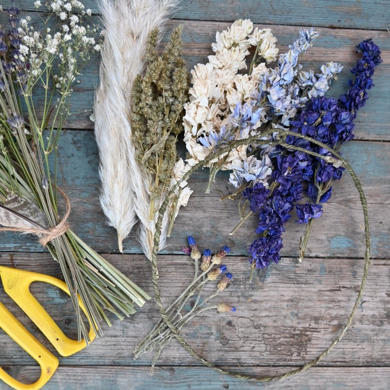 Assorted dried flowers, shorter stem length and flower heads ( ecxcludes Cornflowers )