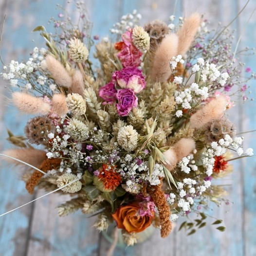 Our rustic, dried flower posies in jam jars are a very versatile choice for decorating your wedding venue or your home.