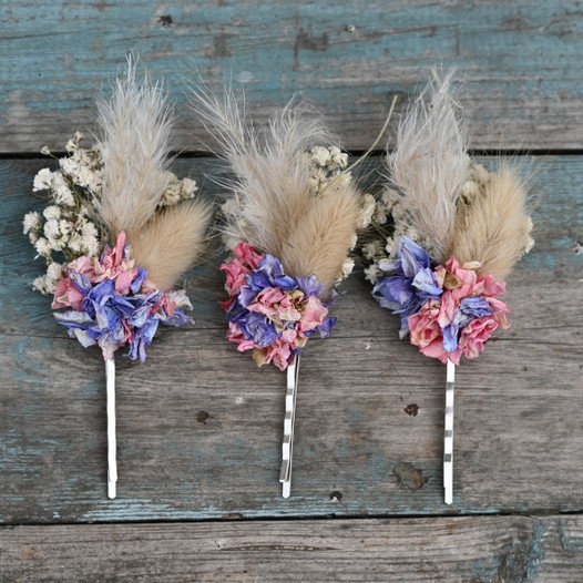 Pampas Boho Candy Blues Set of 3 Hair Grips