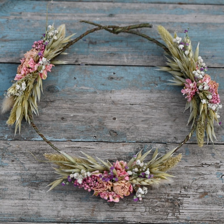 Our handmade dried flower hair crowns are a great alternative for creating a wild, bohemian look to your wedding.