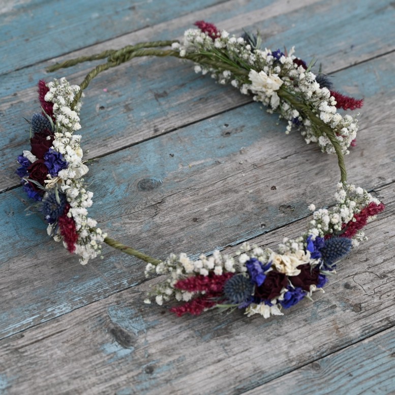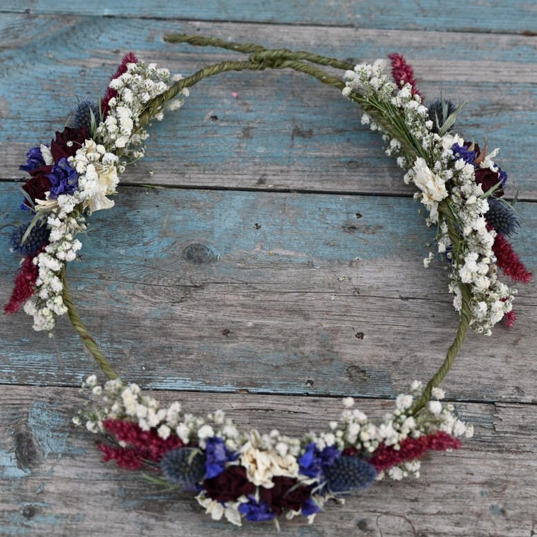 Our handmade dried flower hair crowns are a great alternative for creating a wild, bohemian look to your wedding.