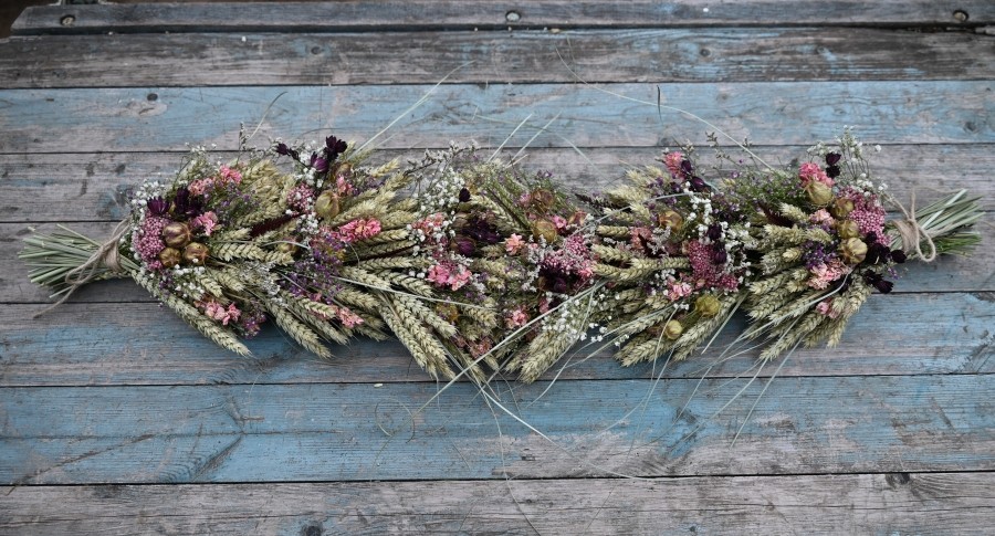 Our rustic, dried flower garlands are a very versatile choice for decorating your wedding venue. They will work on the ceremony table for the first part of the day and then as they are so lightweight they can easily be moved to the wedding breakfast top table. They are a great alternative for creating a wild, bohemian look to your day as you get to keep them, or give them away as a gift at the end of the day.