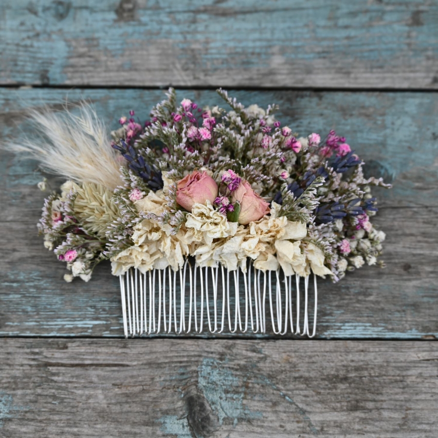 Medium sized hair comb: flowers measure approx 13cms long x 6 cms high.