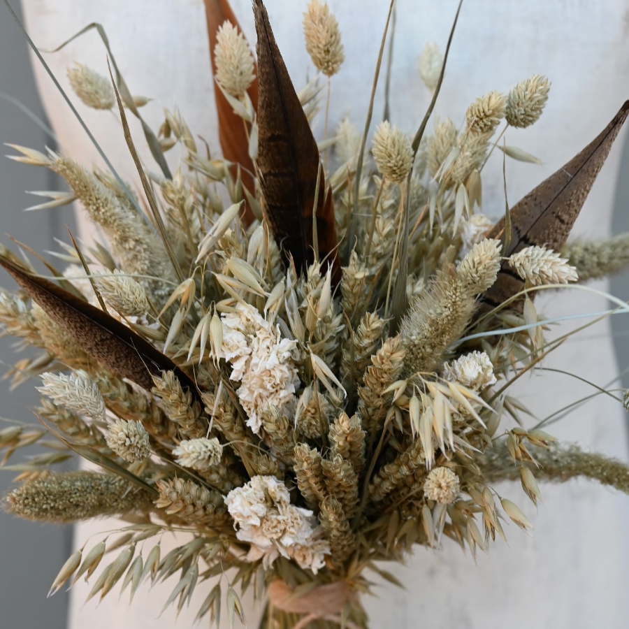 Oats, Amaranthus, Larkspur, Grasses, Wheat, Feathers.