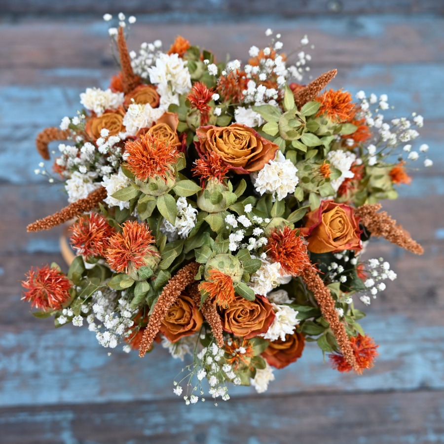 Please store these dried flowers away from direct sunlight, in a dry, cool place in the packaging provided.
